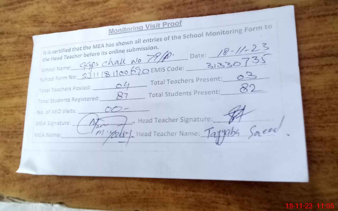 | EMIS Code: 31330735 | Name of School: GGPS CHAK NO. 79/P | |||