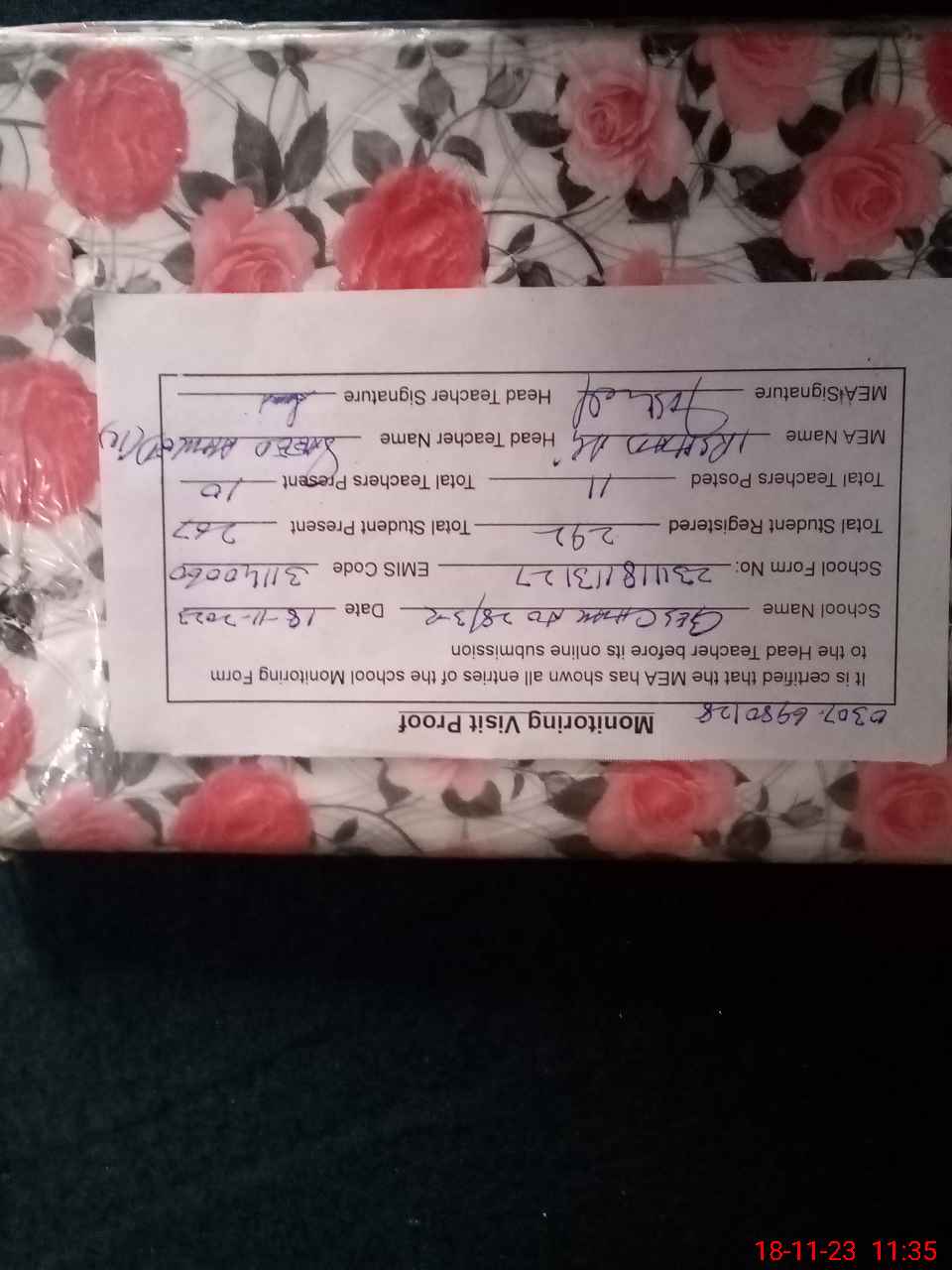 | Attendance Register | Head Teacher | MEA with School | Visit Proof |