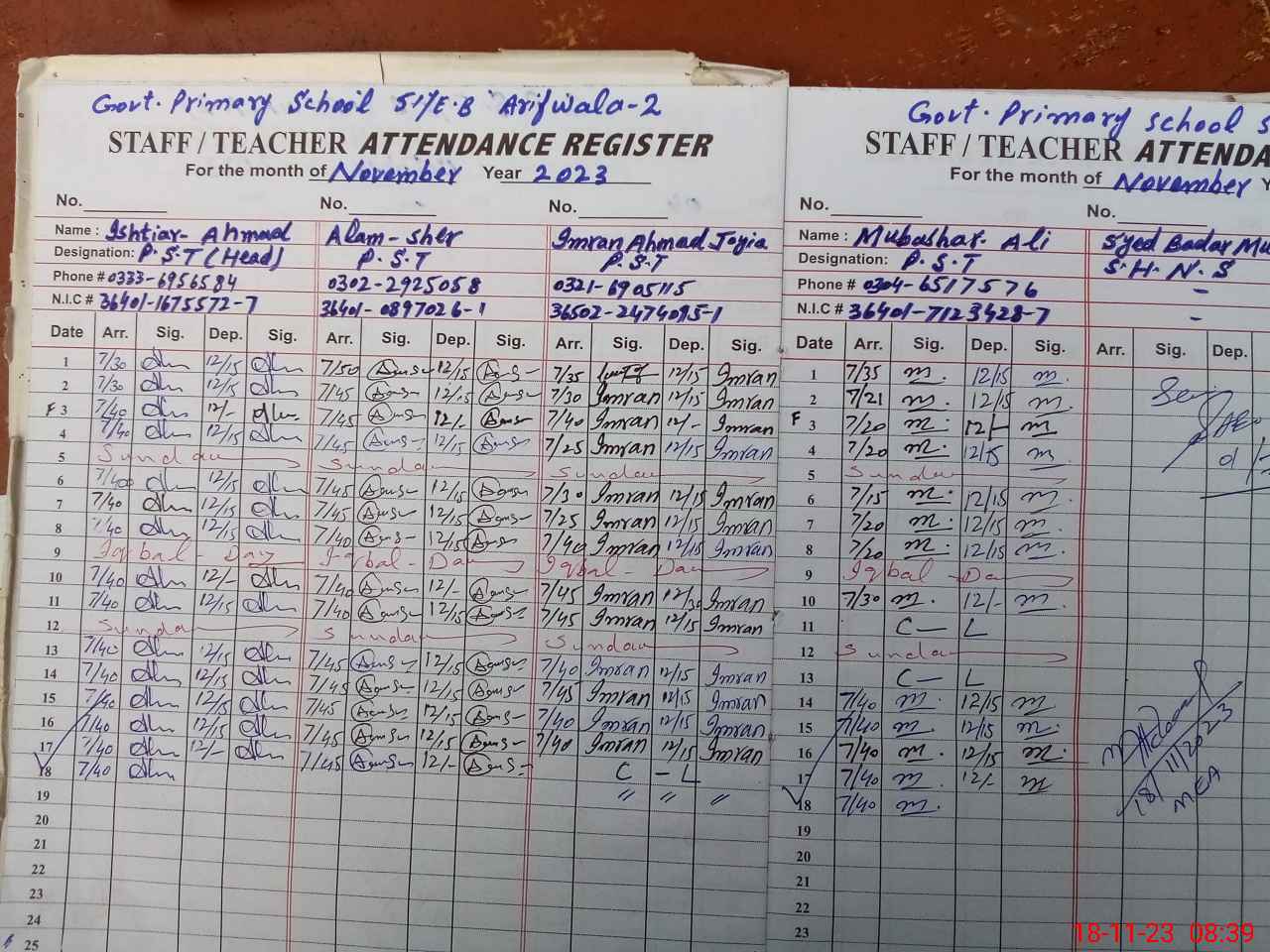 | Name: IS**** AH**** Designation: (School Headmaster's/Headmistress's) PST Phone/Cell Number: 03**** |