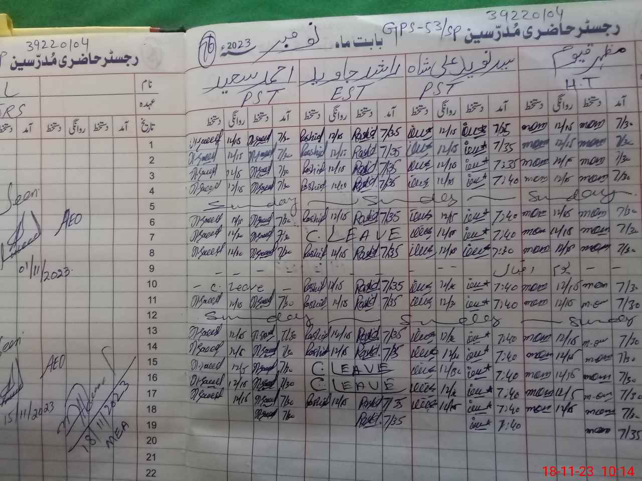 | Name: SY**** MU**** NA**** AL**** SH**** Designation: (School Headmaster's/Headmistress's) PST Phone/Cell Number: 03**** |