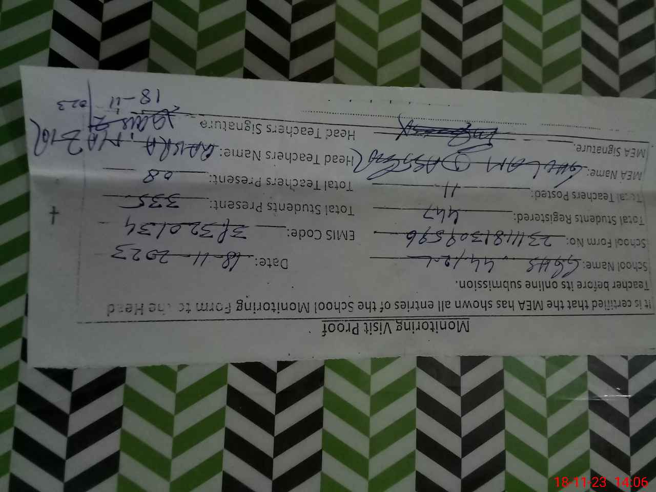 | Name: Qa**** Na**** Designation: (School Headmaster's/Headmistress's) SST Phone/Cell Number: 03**** |