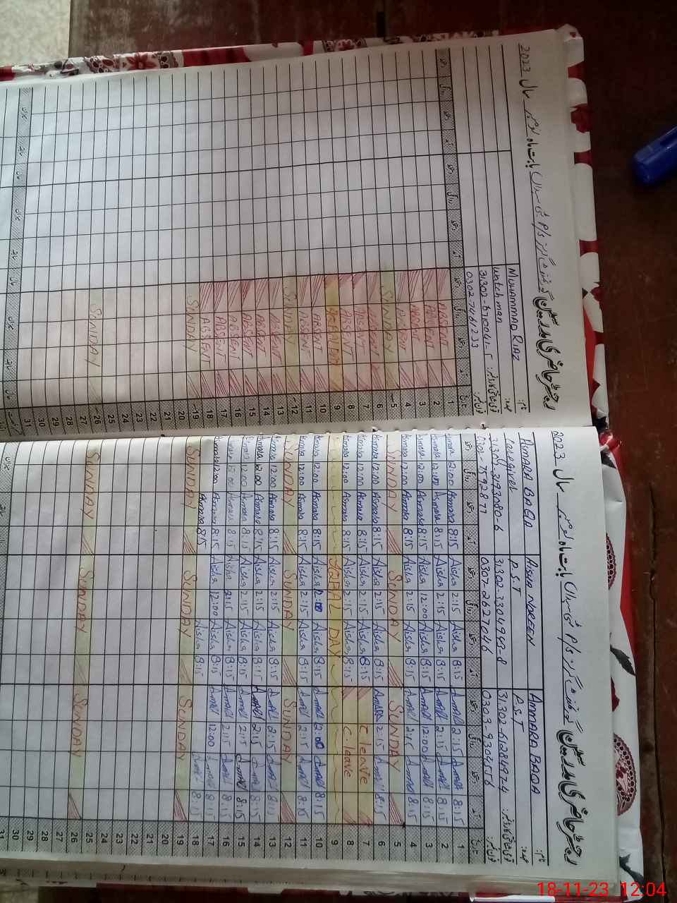 | CNIC | Full Name | Designation | R/C | Absence During Last Calender Month |