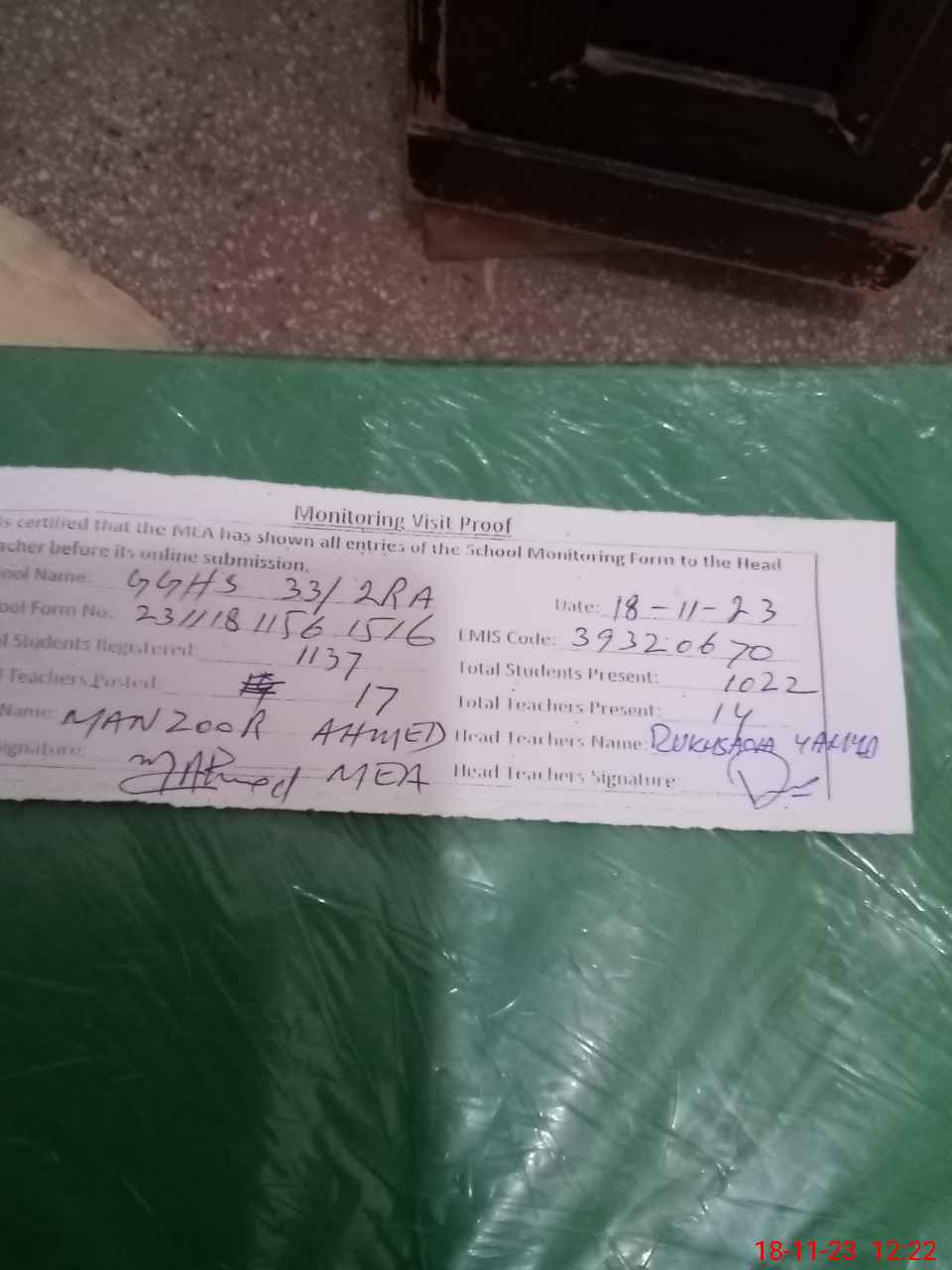 | EMIS Code: 39320670 | Name of School: GGHS 33/2-RA | |||