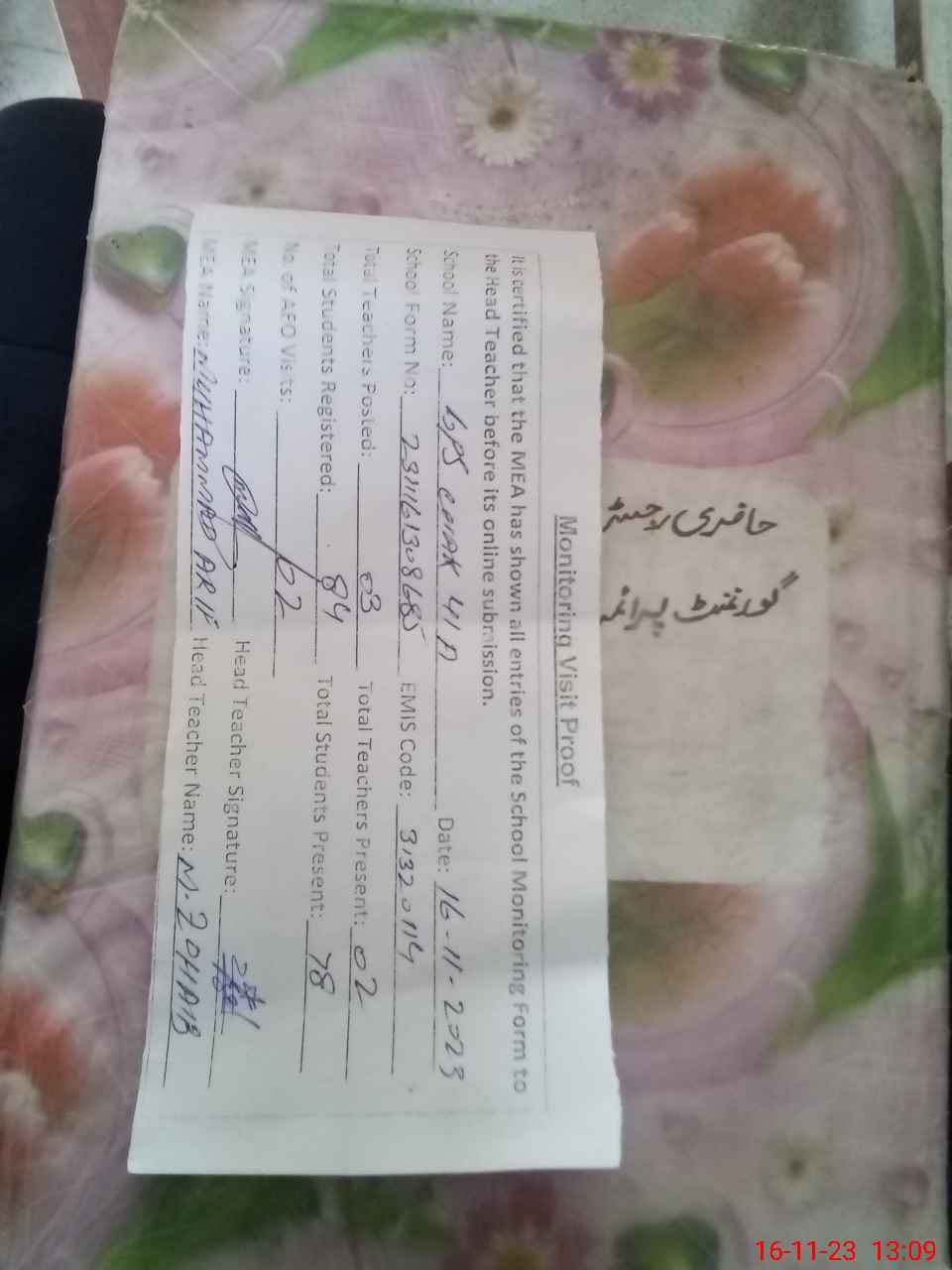 | EMIS Code: 31320114 | Name of School: GPS CHAK 41/A | |||