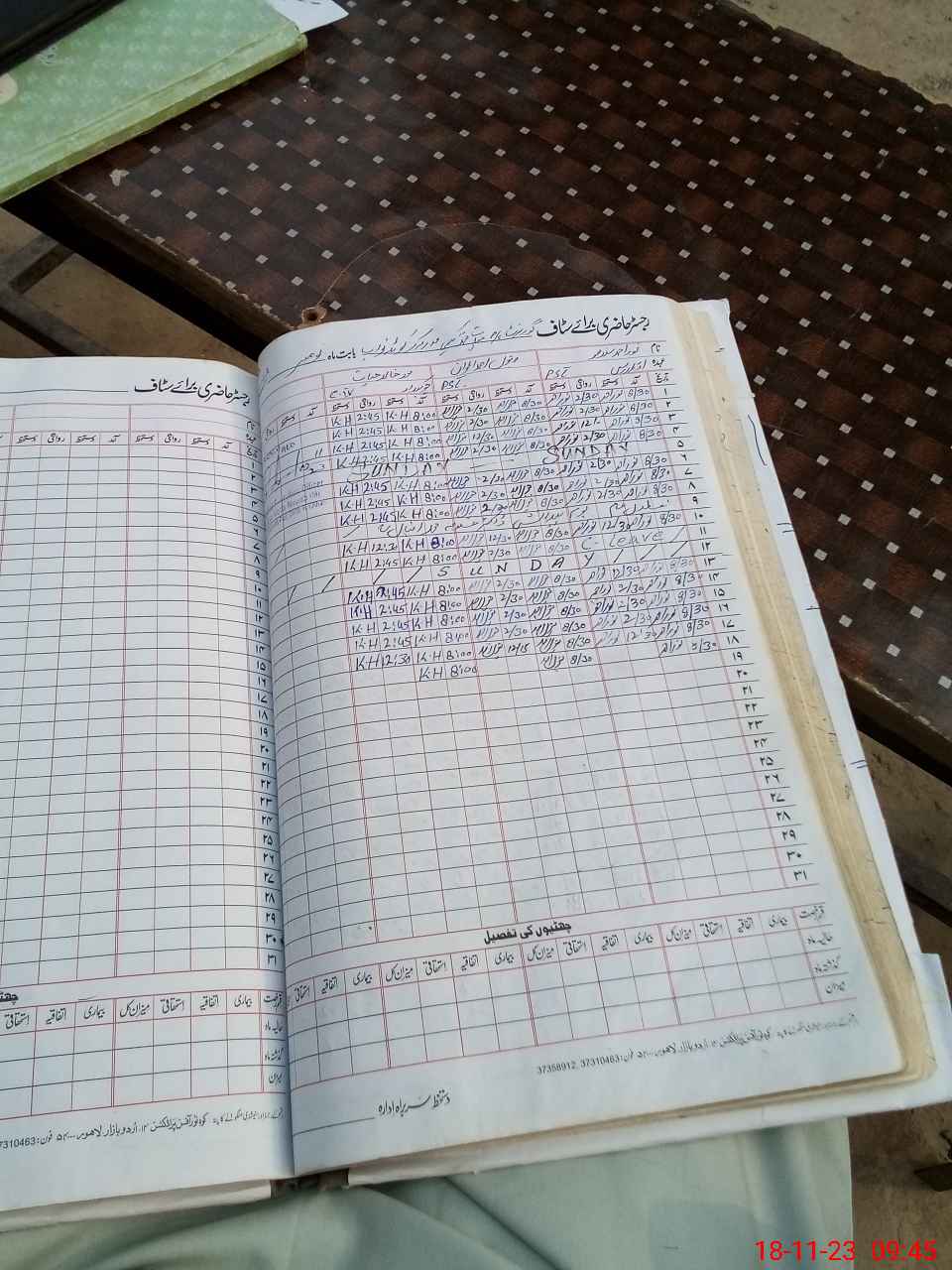 | CNIC | Full Name | Designation | R/C | Absence During Last Calender Month |