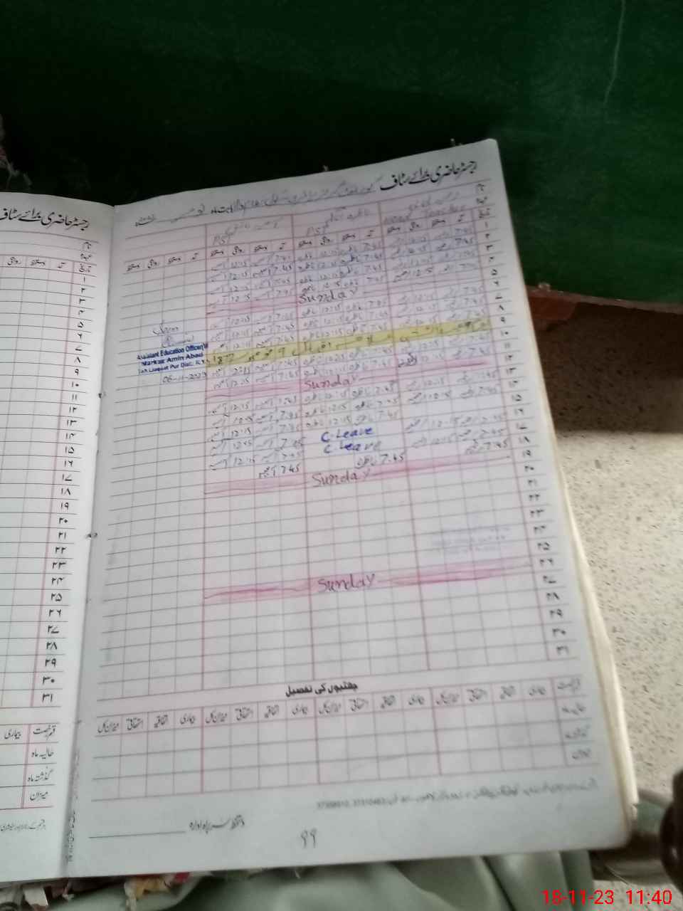 | CNIC | Full Name | Designation | R/C | Absence During Last Calender Month |
