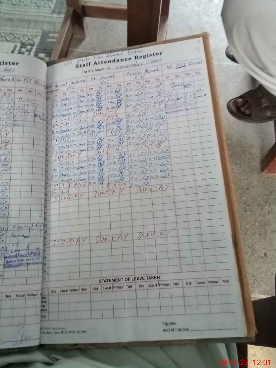 | Name: AB**** SH**** Designation: (School Headmaster's/Headmistress's) PST Phone/Cell Number: 03**** |