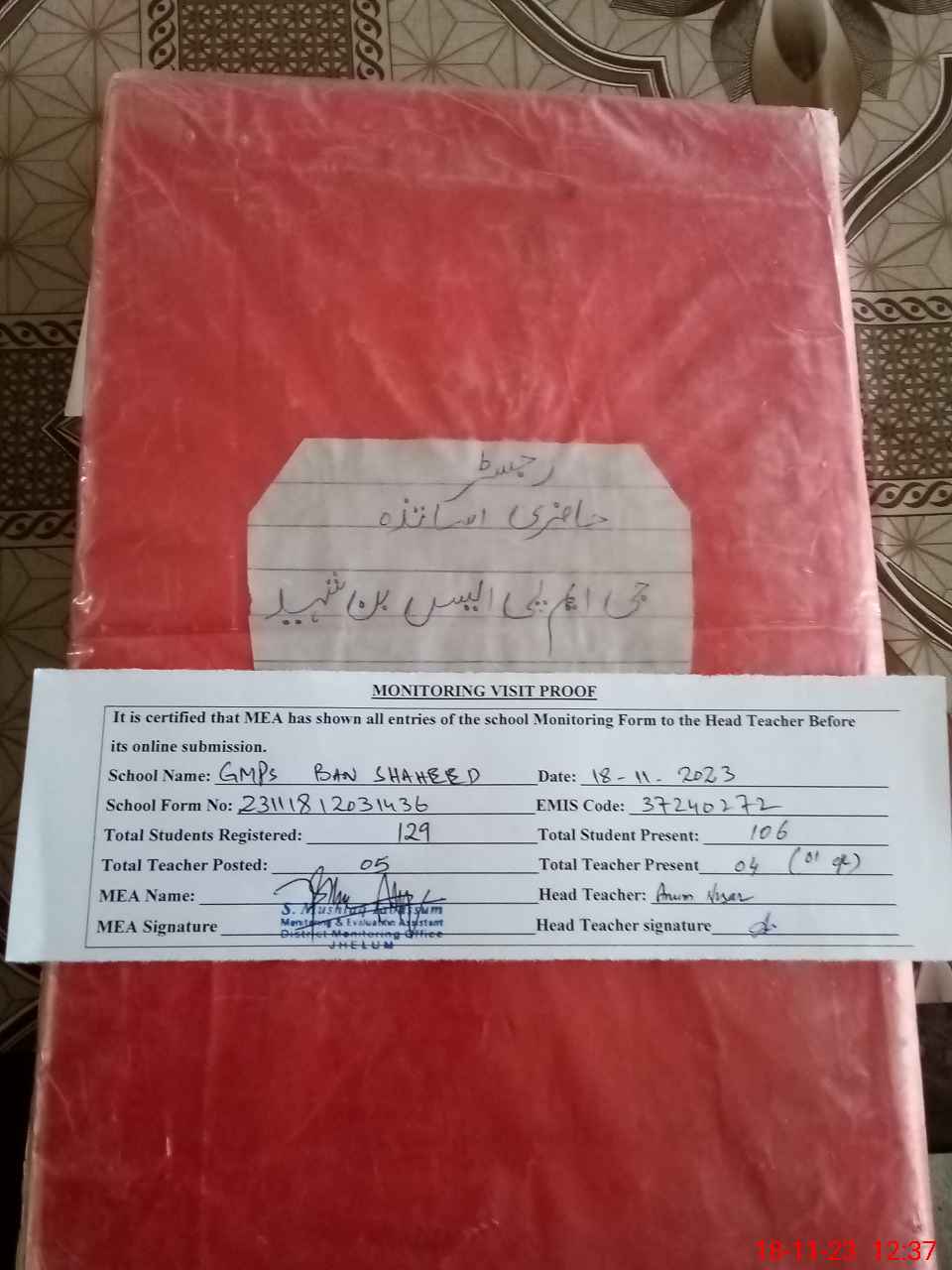 | EMIS Code: 37240272 | Name of School: GMPS BAN SHAHEED | |||