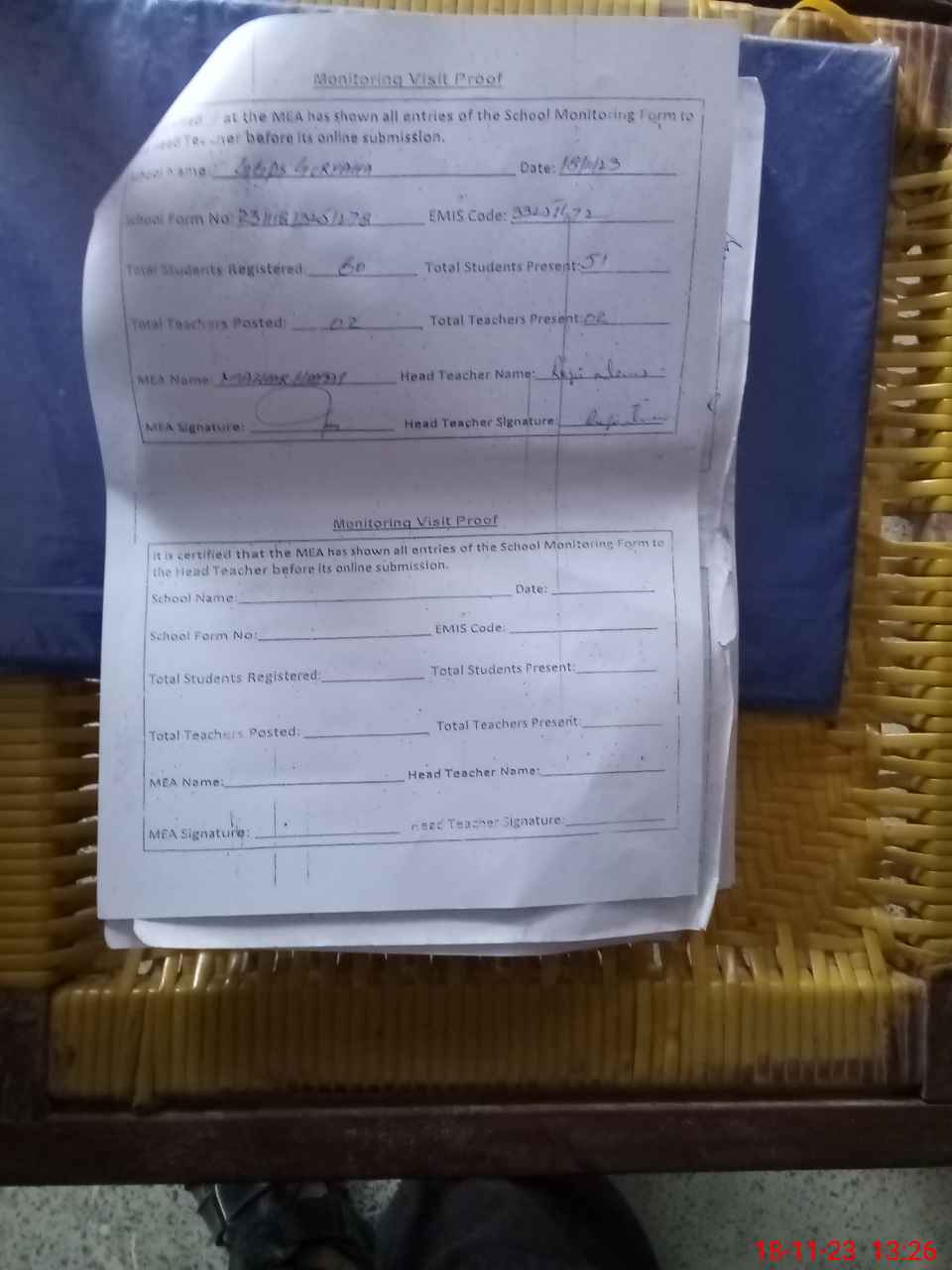 | Attendance Register | Head Teacher | MEA with School | Visit Proof |