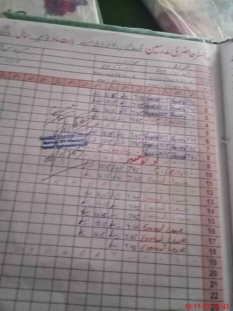 | CNIC | Full Name | Designation | R/C | Absence During Last Calender Month |