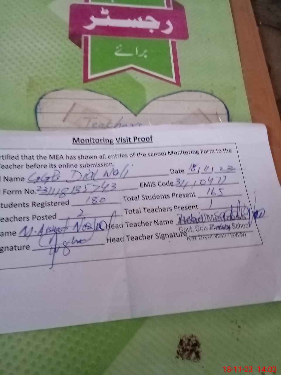 | EMIS Code: 31110477 | Name of School: GGPS KOT DIAL WALI | |||