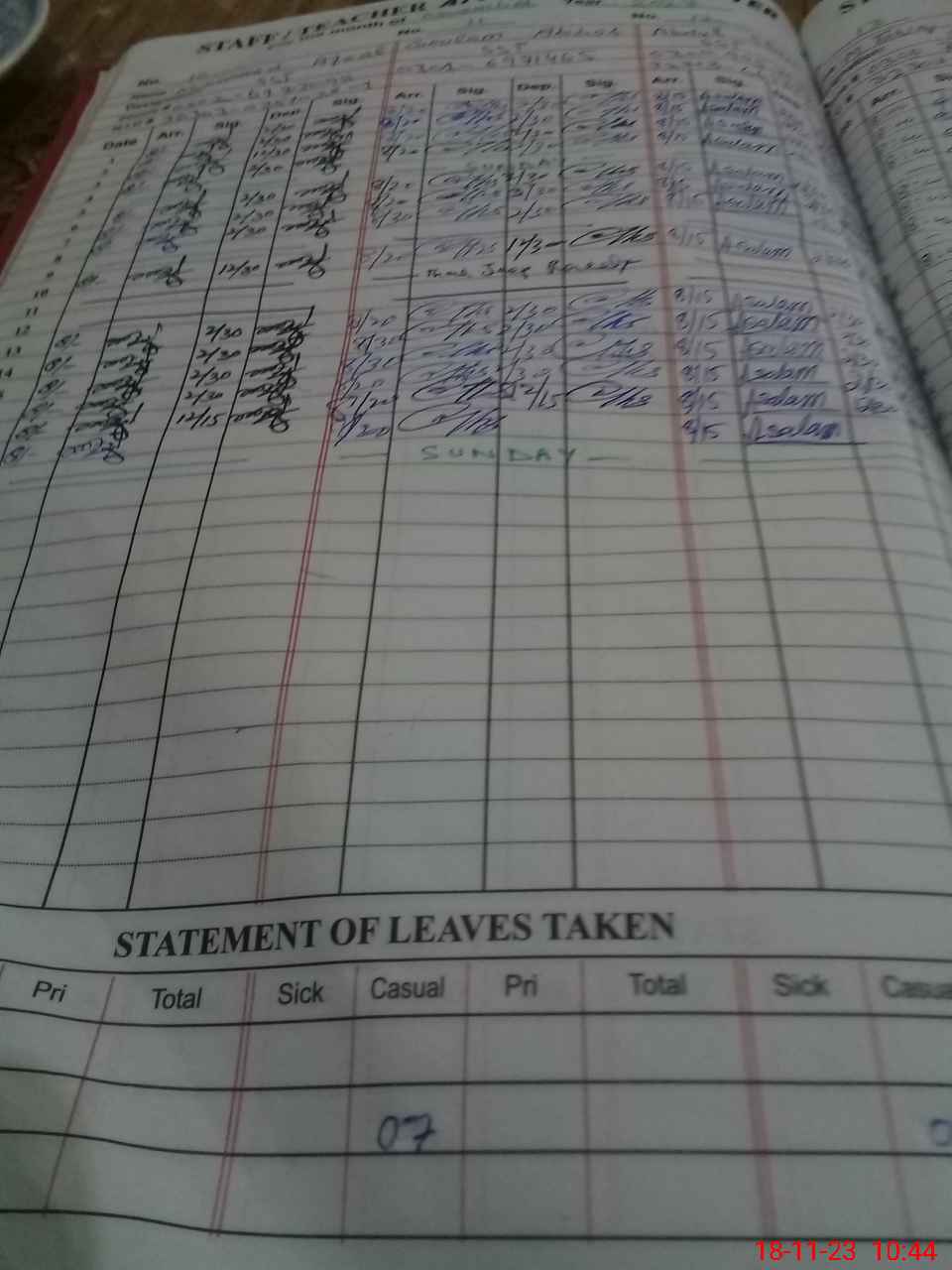 | 32**** | Mo**** Ja**** | 3 | 1 | 0 | 0 | 0 | 0 | 0 | 0 | 0 | 0 | 0 | Absent (Un-Authorized) |