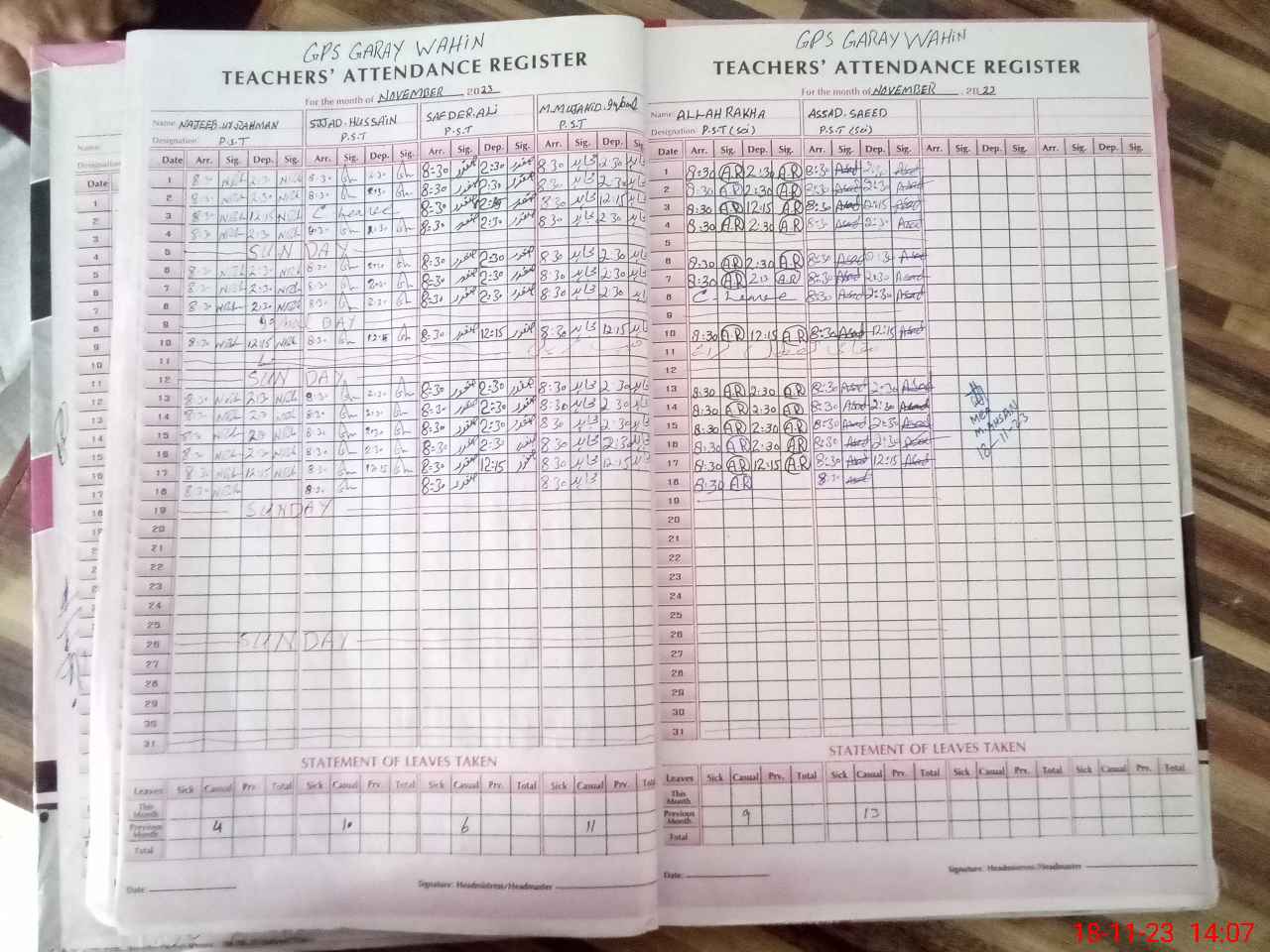 | CNIC | Full Name | Designation | R/C | Absence During Last Calender Month |