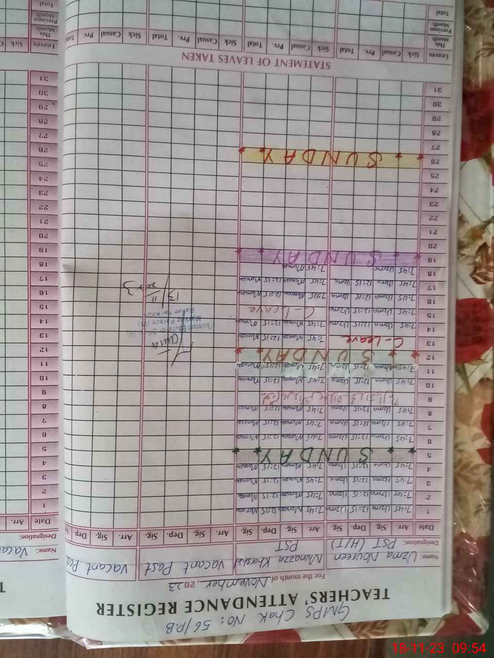 | Name: Uz**** Na**** Designation: (School Headmaster's/Headmistress's) PST Phone/Cell Number: 03**** |