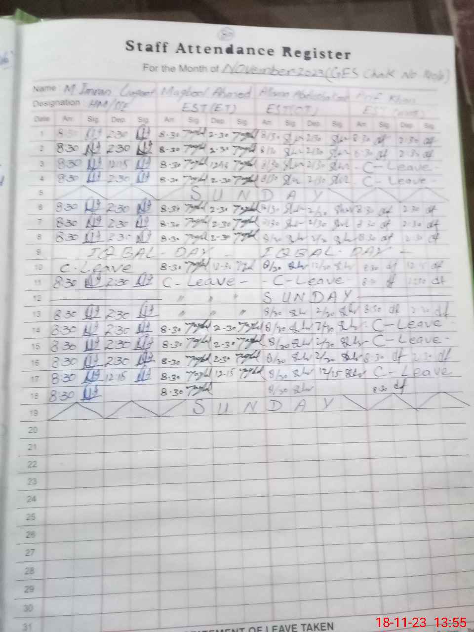 | Name: MU**** IM**** LI**** Designation: (School Headmaster's/Headmistress's) SSE (CHEM) Phone/Cell Number: 03**** |