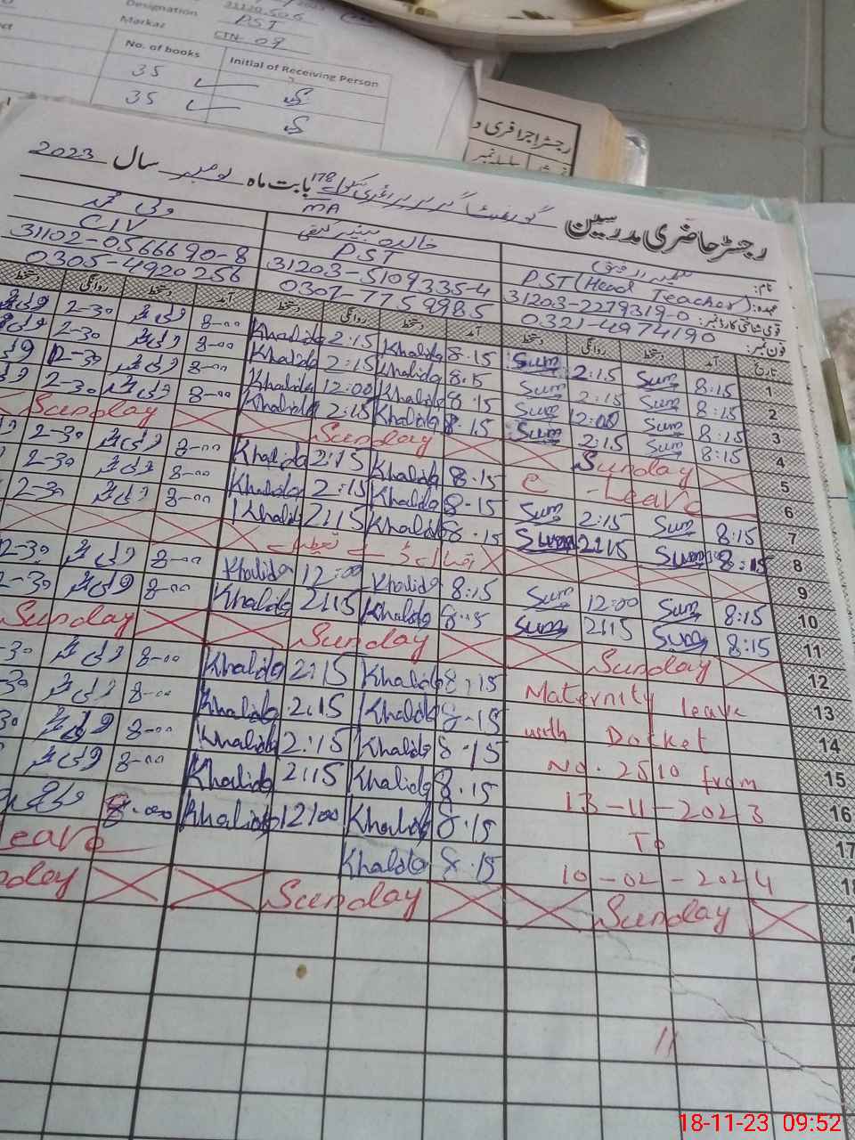 | Name: SU**** RA**** Designation: (School Headmaster's/Headmistress's) PST Phone/Cell Number: 03**** |