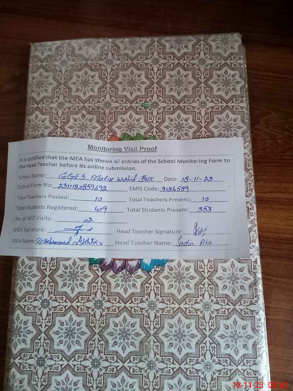 | EMIS Code: 31340589 | Name of School: GGES MALIK WAHID BUX | |||