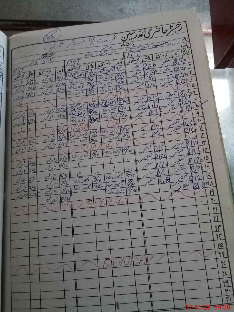 | CNIC | Full Name | Designation | R/C | Absence During Last Calender Month |