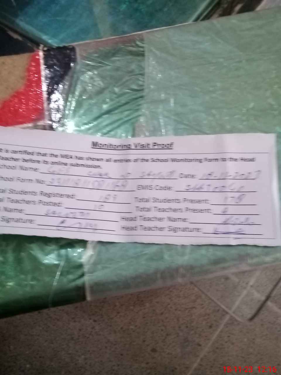 | Attendance Register | Head Teacher | MEA with School | Visit Proof |