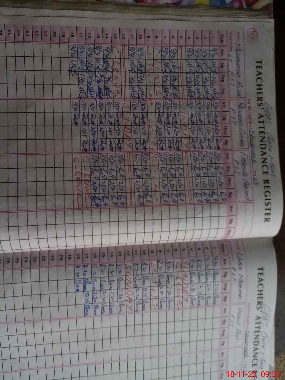 | CNIC | Full Name | Designation | R/C | Absence During Last Calender Month |