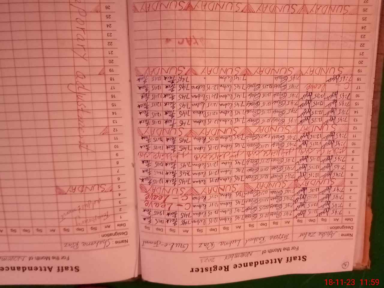 | CNIC | Full Name | Designation | R/C | Absence During Last Calender Month |