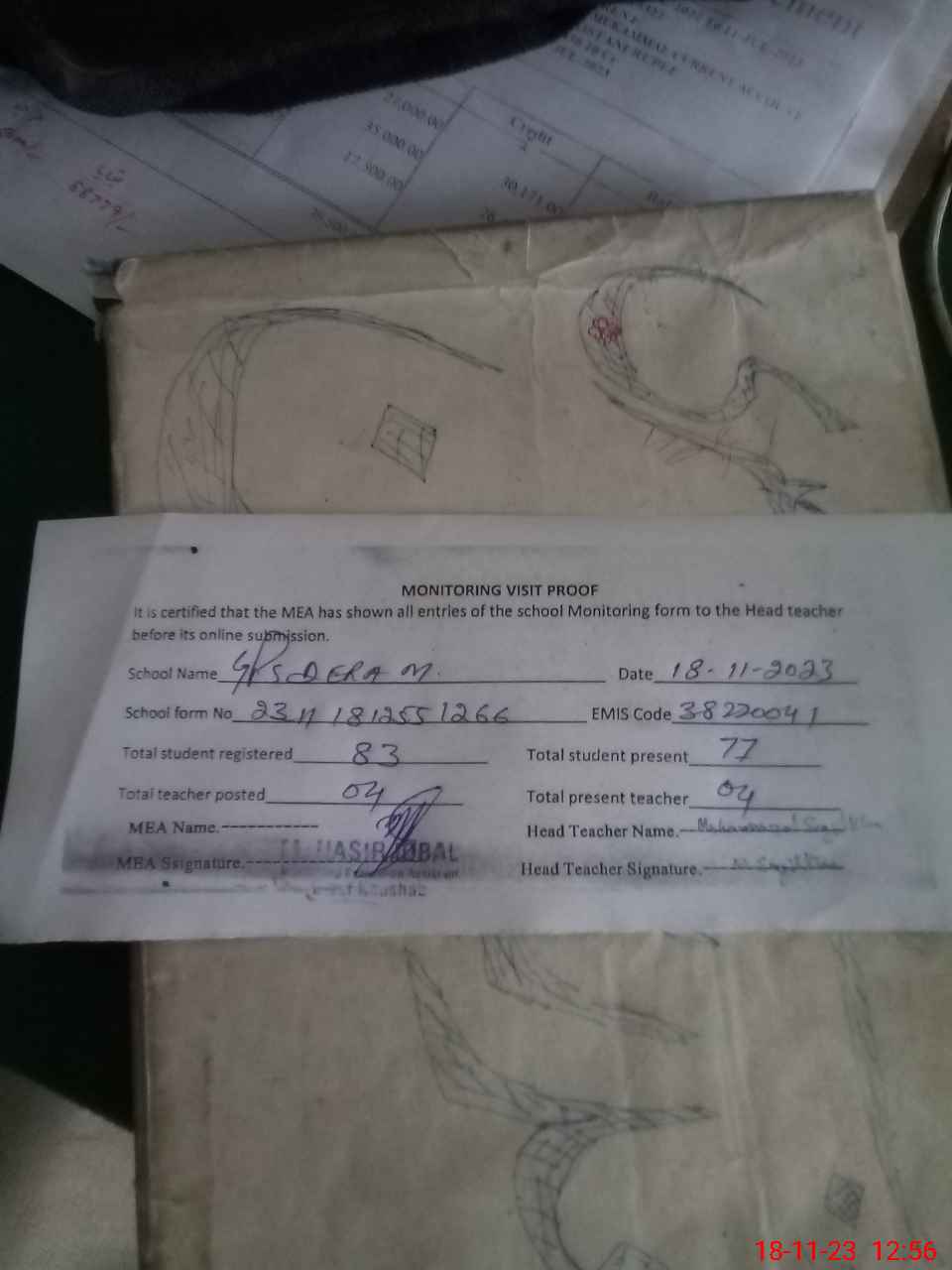 | EMIS Code: 38220041 | Name of School: GPS DERA MUHAMMAD HANIF | |||