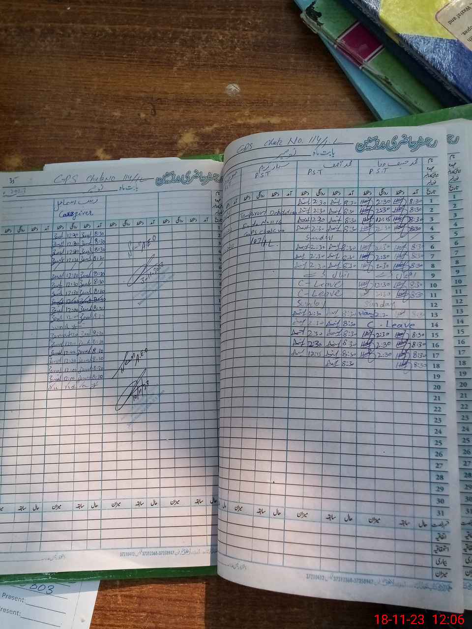 | CNIC | Full Name | Designation | R/C | Absence During Last Calender Month |