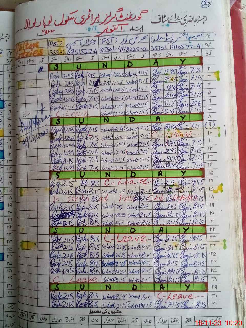 | CNIC | Full Name | Designation | R/C | Absence During Last Calender Month |