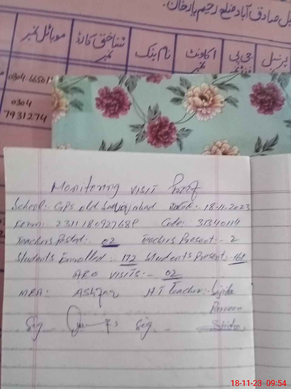 | EMIS Code: 31340114 | Name of School: GPS OLD SADIQABAD | |||