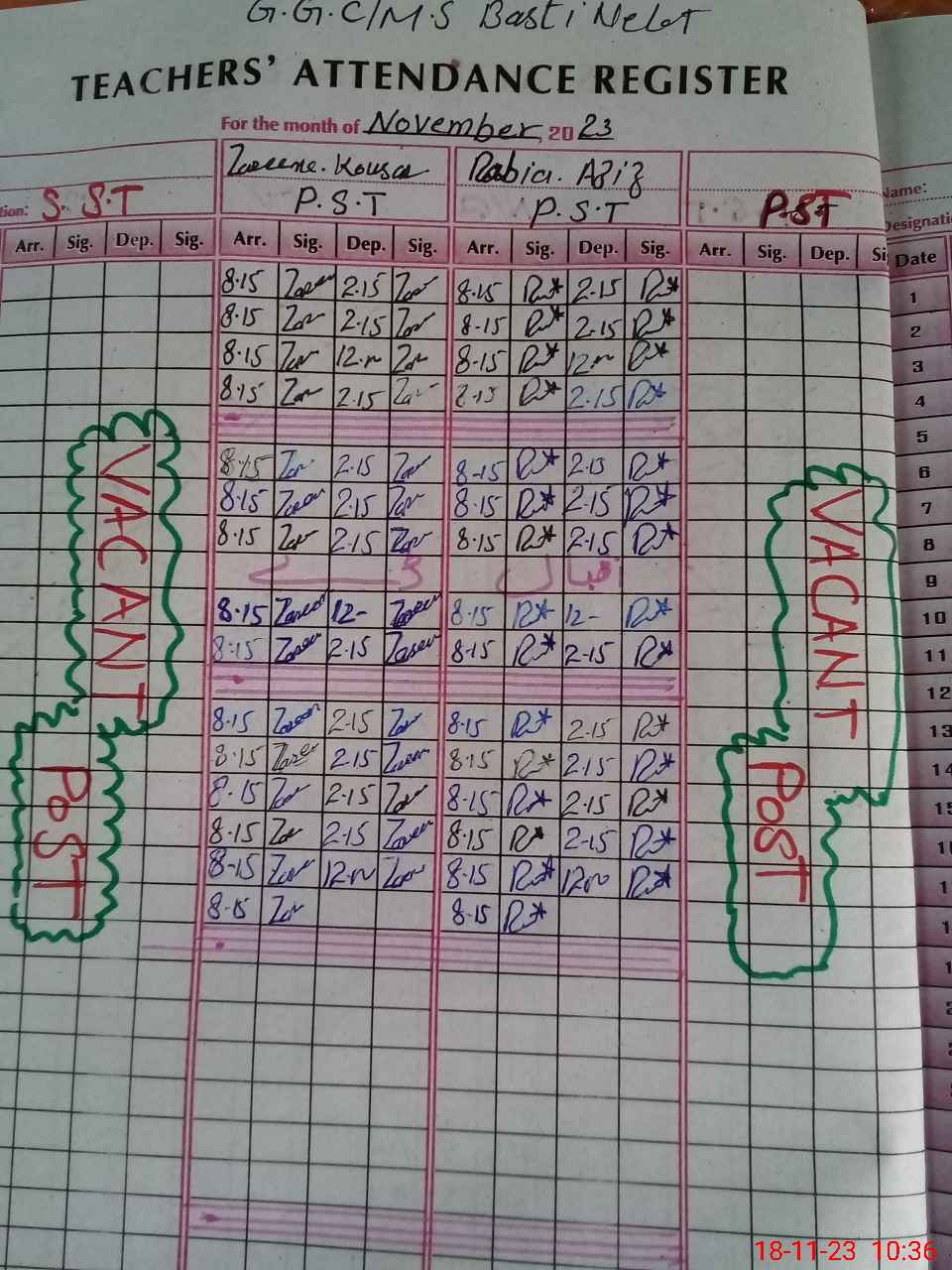 | CNIC | Full Name | Designation | R/C | Absence During Last Calender Month |