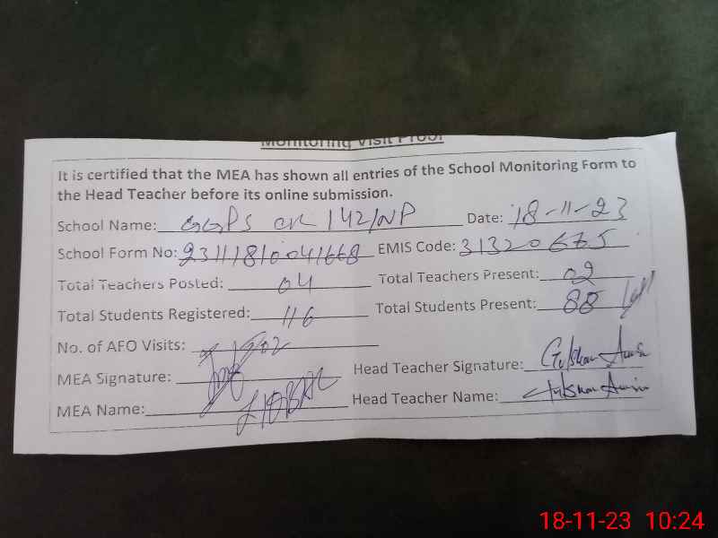 | EMIS Code: 31320665 | Name of School: GGPS CHAK 142/NP | |||