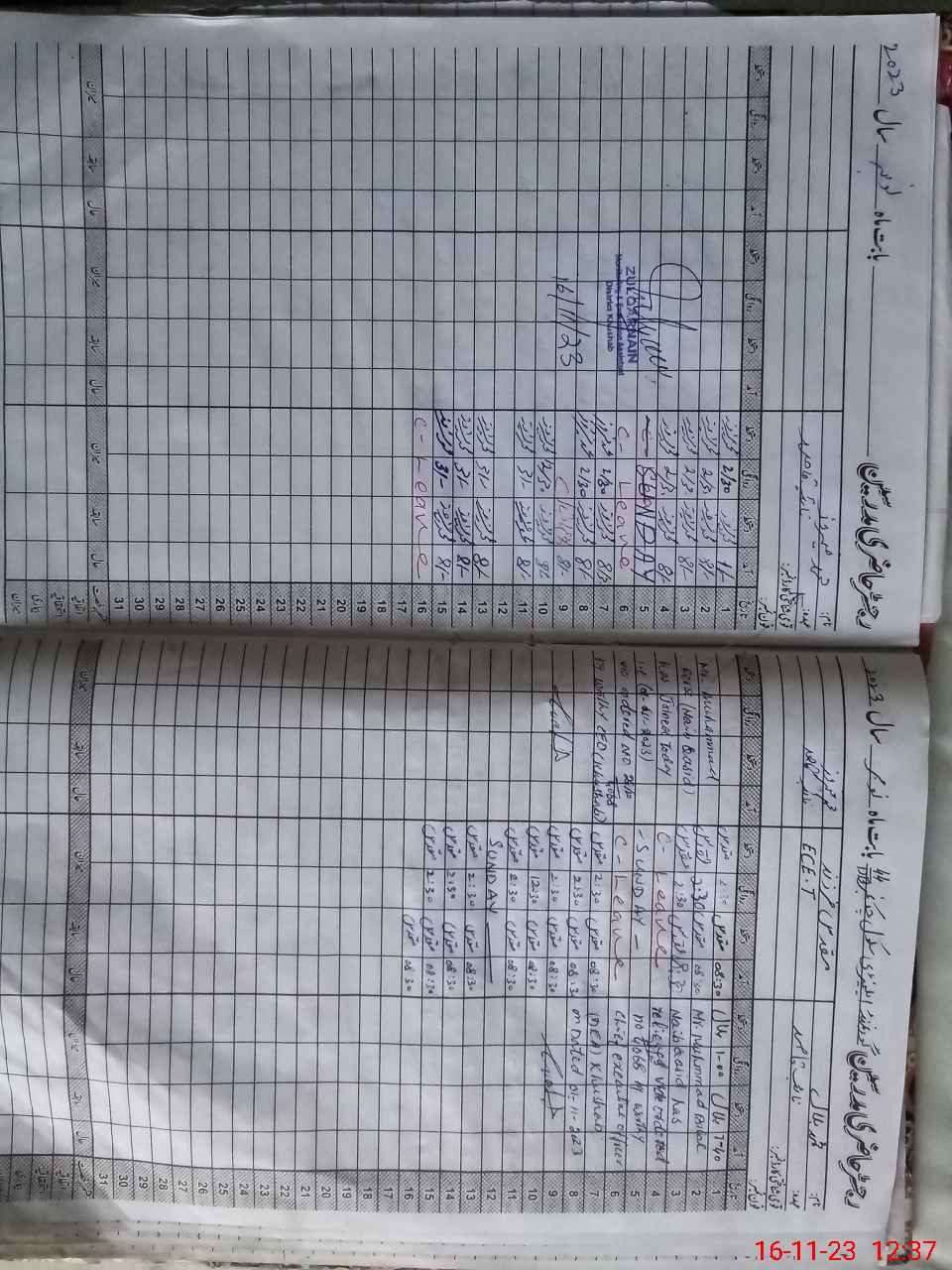 | CNIC | Full Name | Designation | R/C | Absence During Last Calender Month |
