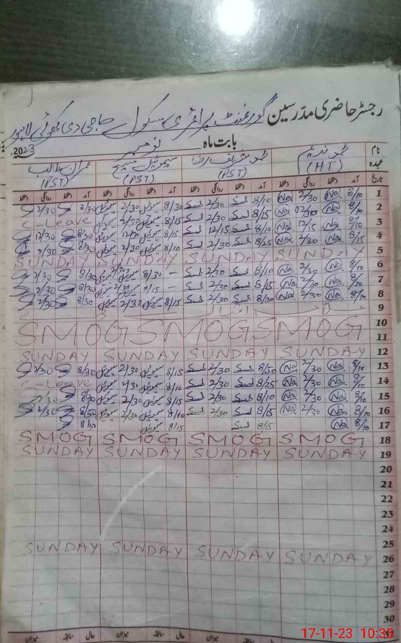 | Remarks (Use Separate Page if Required): Security Guard Muhammad Hussain long absent since 06 March 2019 Bank statements of NSB and FTF not available of for the month of October 2023 Some windows broken Maintenance and paint highly required 35210338 | |||||