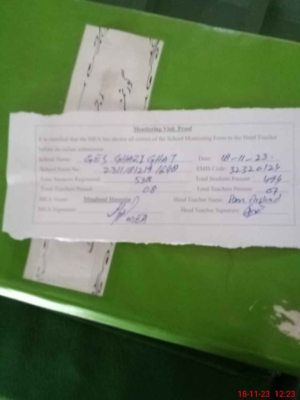 | EMIS Code: 32320124 | Name of School: GES GHAZI GHAT | |||