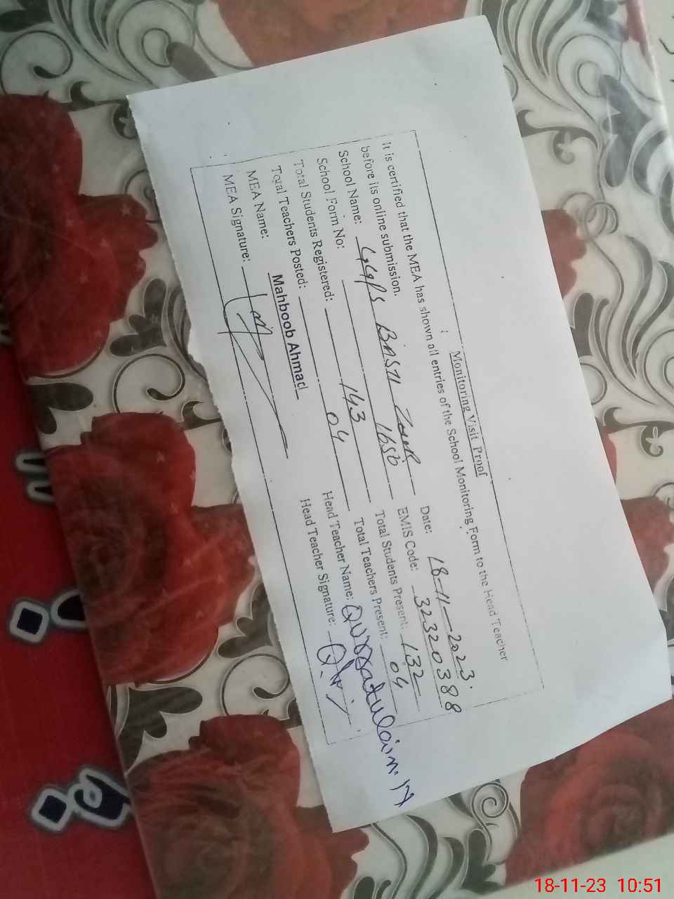 | EMIS Code: 32320388 | Name of School: GGPS BASTI ZOUR | |||