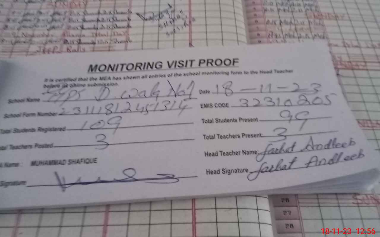 | EMIS Code: 32310205 | Name of School: GGPS DAMMER WALA JANUBI NO. 1 | |||