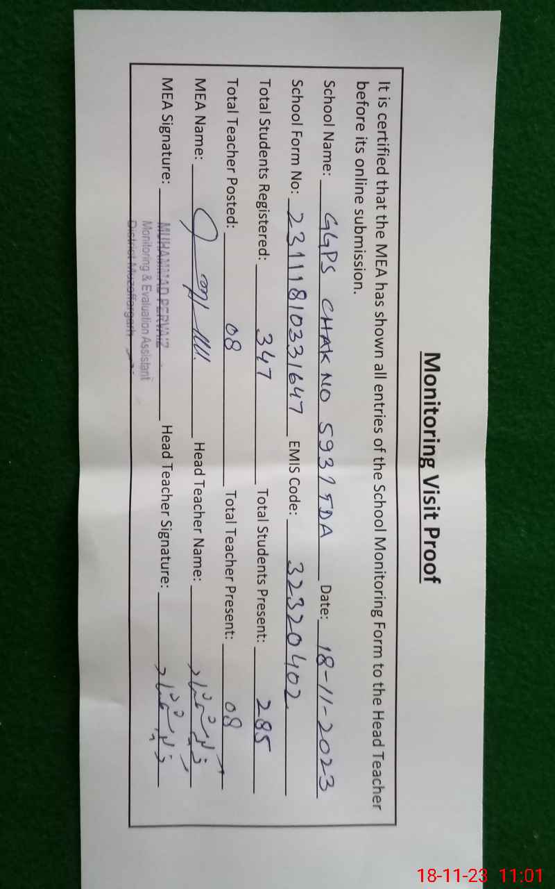 | EMIS Code: 32320402 | Name of School: GGES CHAK NO. 593 TDA | |||