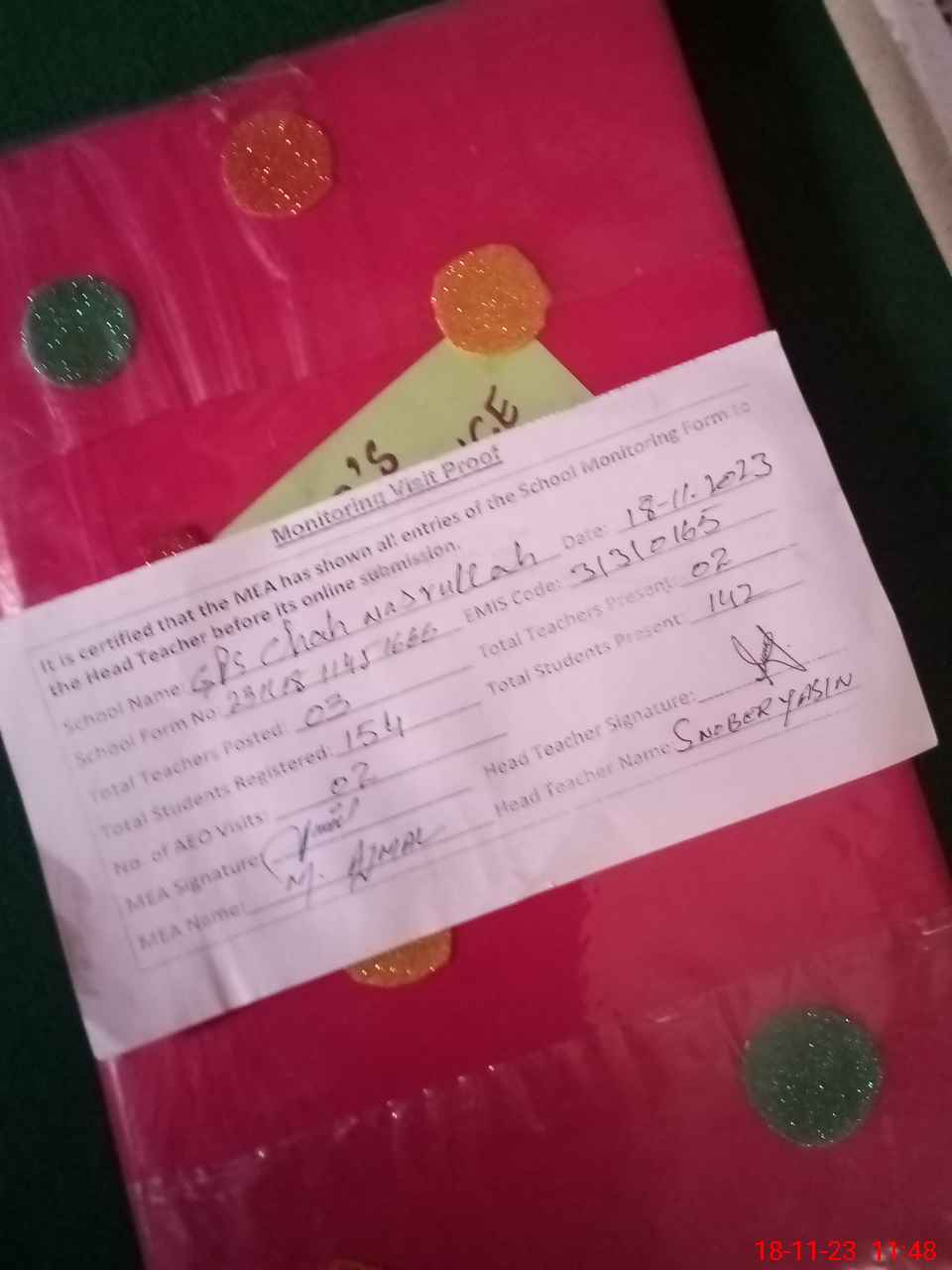 | EMIS Code: 31310165 | Name of School: GPS CHAH NASRULLAH | |||