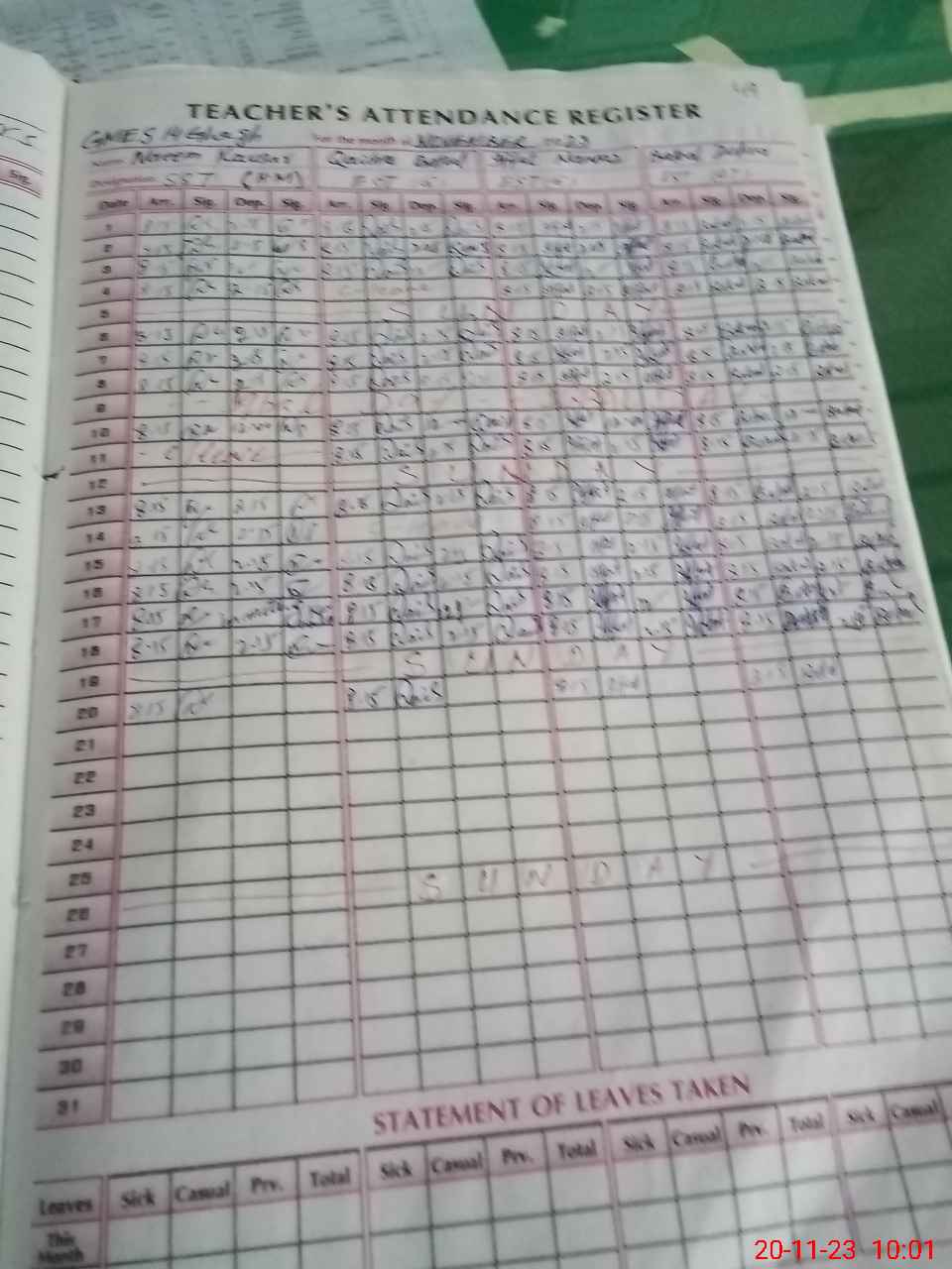| Monitoring Date: 20-11-2023 | Start Time: 20-11-2023 09:09 AM | End Time: 20-11-2023 10:03 AM | Name of MEA: Mu**** Mu**** | |