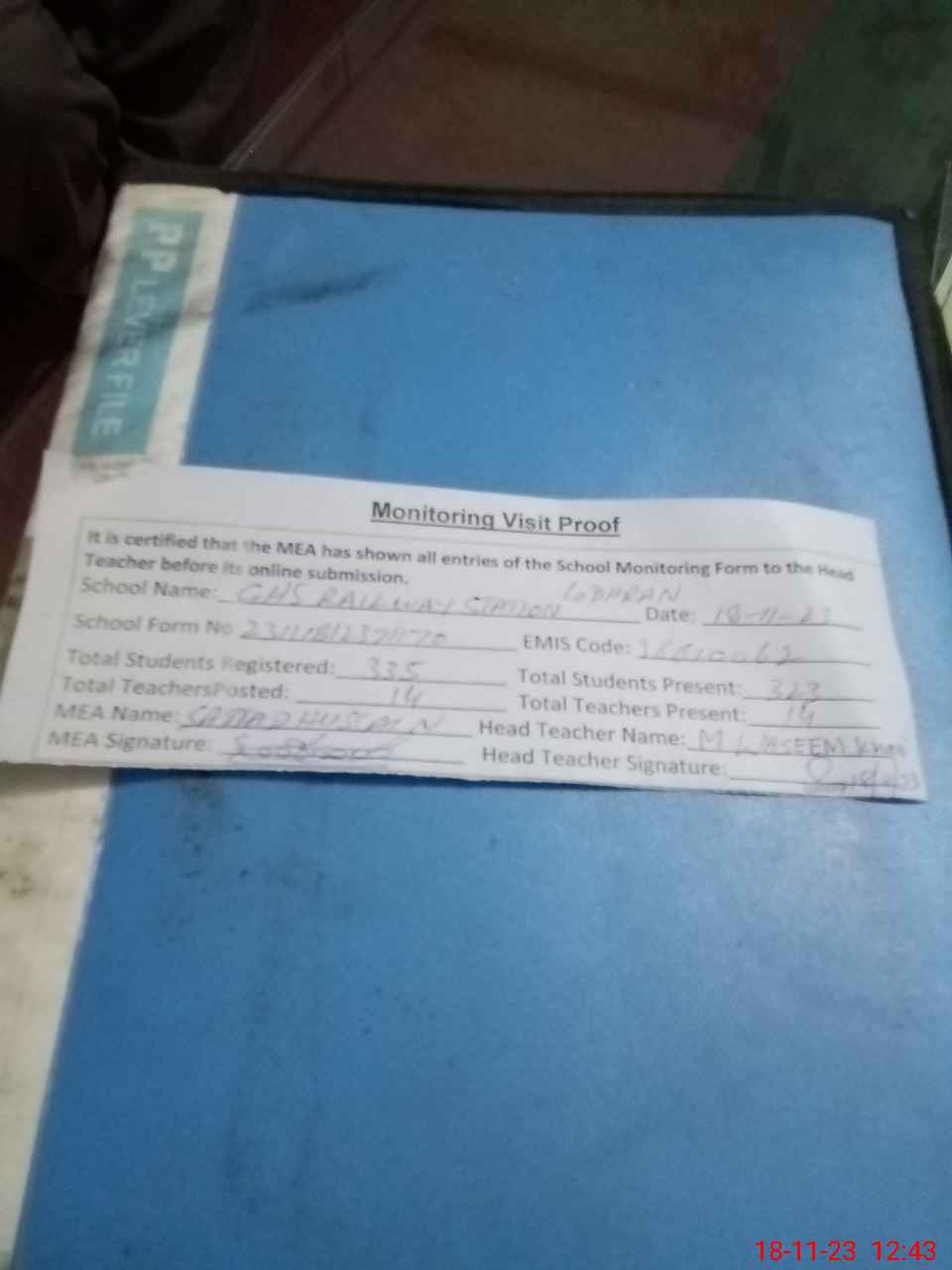 | EMIS Code: 36610062 | Name of School: GHS RAILWAY STATION LODHRAN | |||