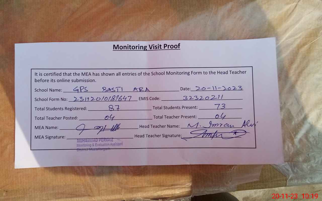 | EMIS Code: 32320211 | Name of School: GPS BASTI ARA | |||