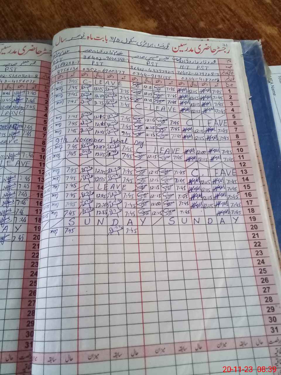 | CNIC | Full Name | Designation | R/C | Absence During Last Calender Month |