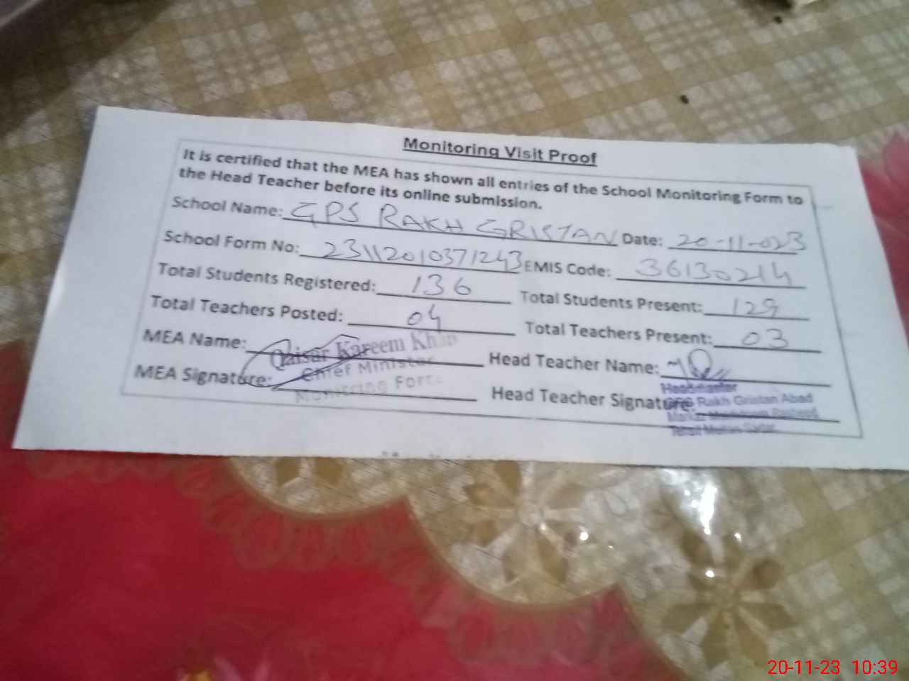 | EMIS Code: 36130214 | Name of School: GPS RAKH GRISTAN ABAD MAKHDUM RASHEED MULTAN | |||