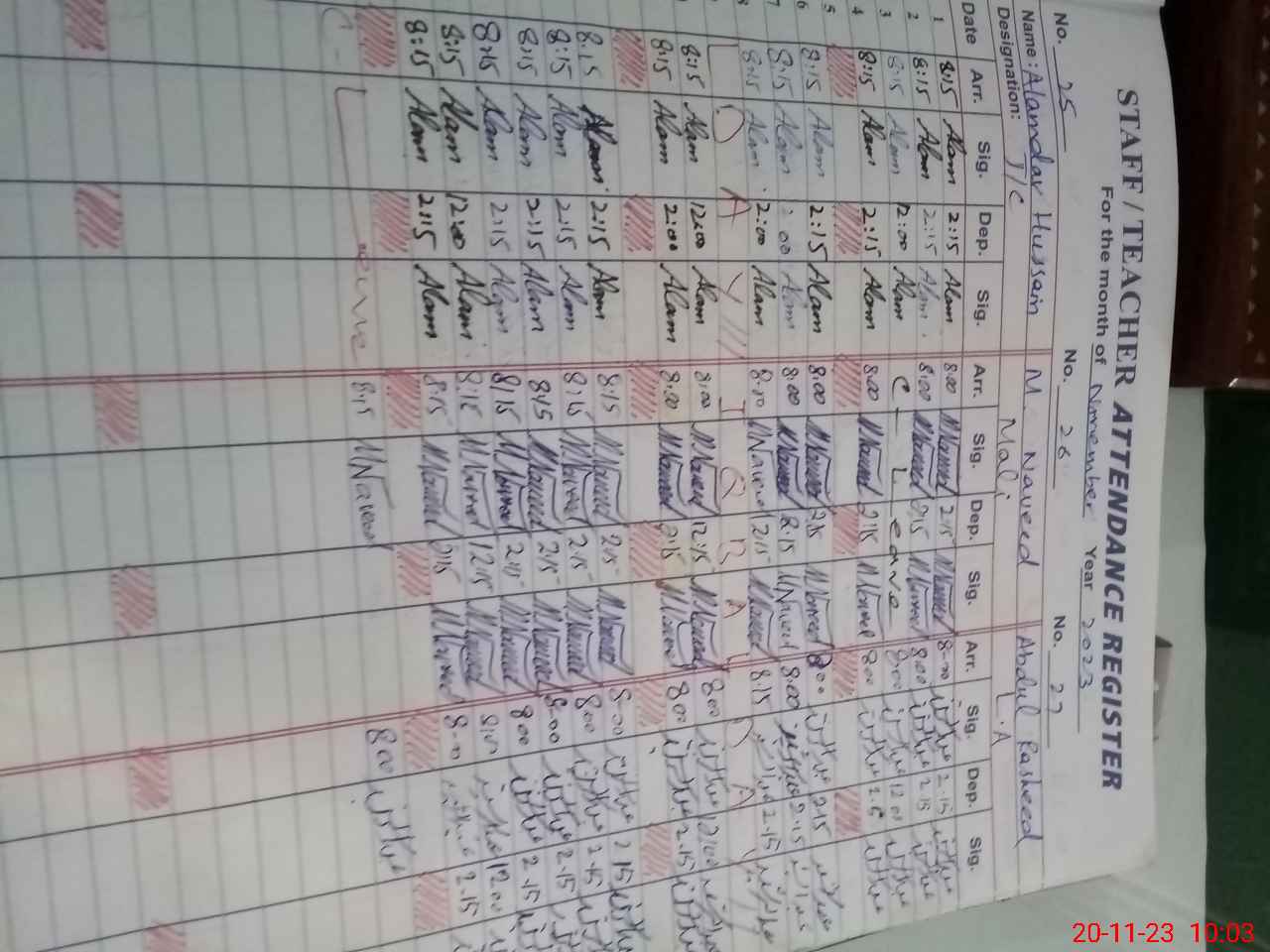 | CNIC | Full Name | Designation | R/C | Absence During Last Calender Month |