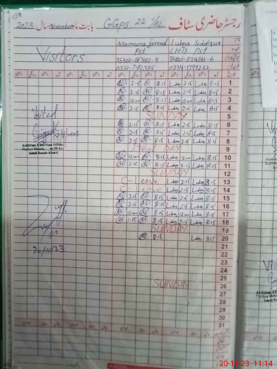 | Name: LU**** SI**** Designation: (School Headmaster's/Headmistress's) PST Phone/Cell Number: 03**** |