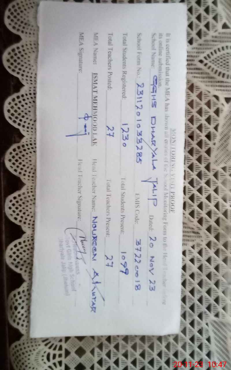 | EMIS Code: 37220018 | Name of School: GGHS DHARIALA JALIB | |||