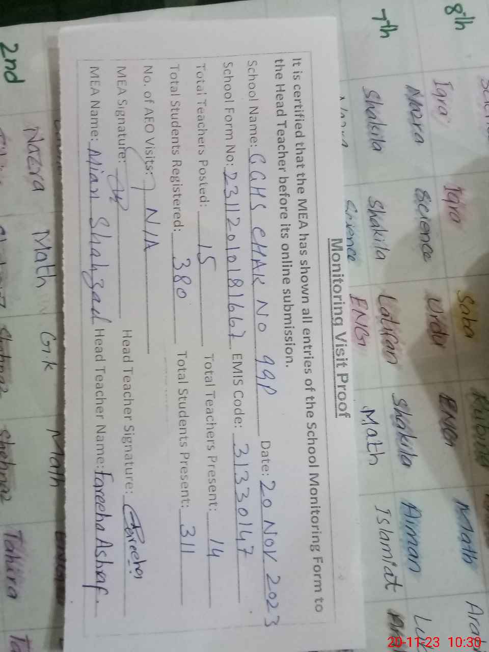 | EMIS Code: 31330147 | Name of School: GGHS CHAK NO. 99/P | |||