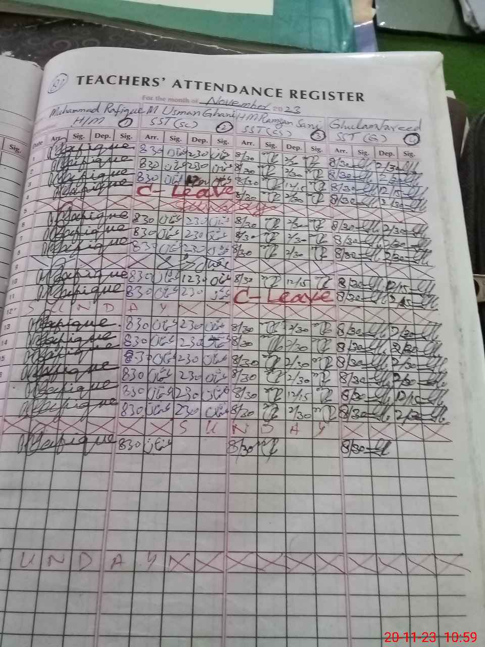 | CNIC | Full Name | Designation | R/C | Absence During Last Calender Month |