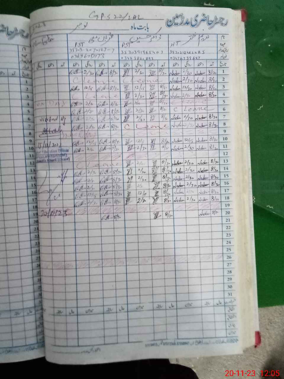 | CNIC | Full Name | Designation | R/C | Absence During Last Calender Month |