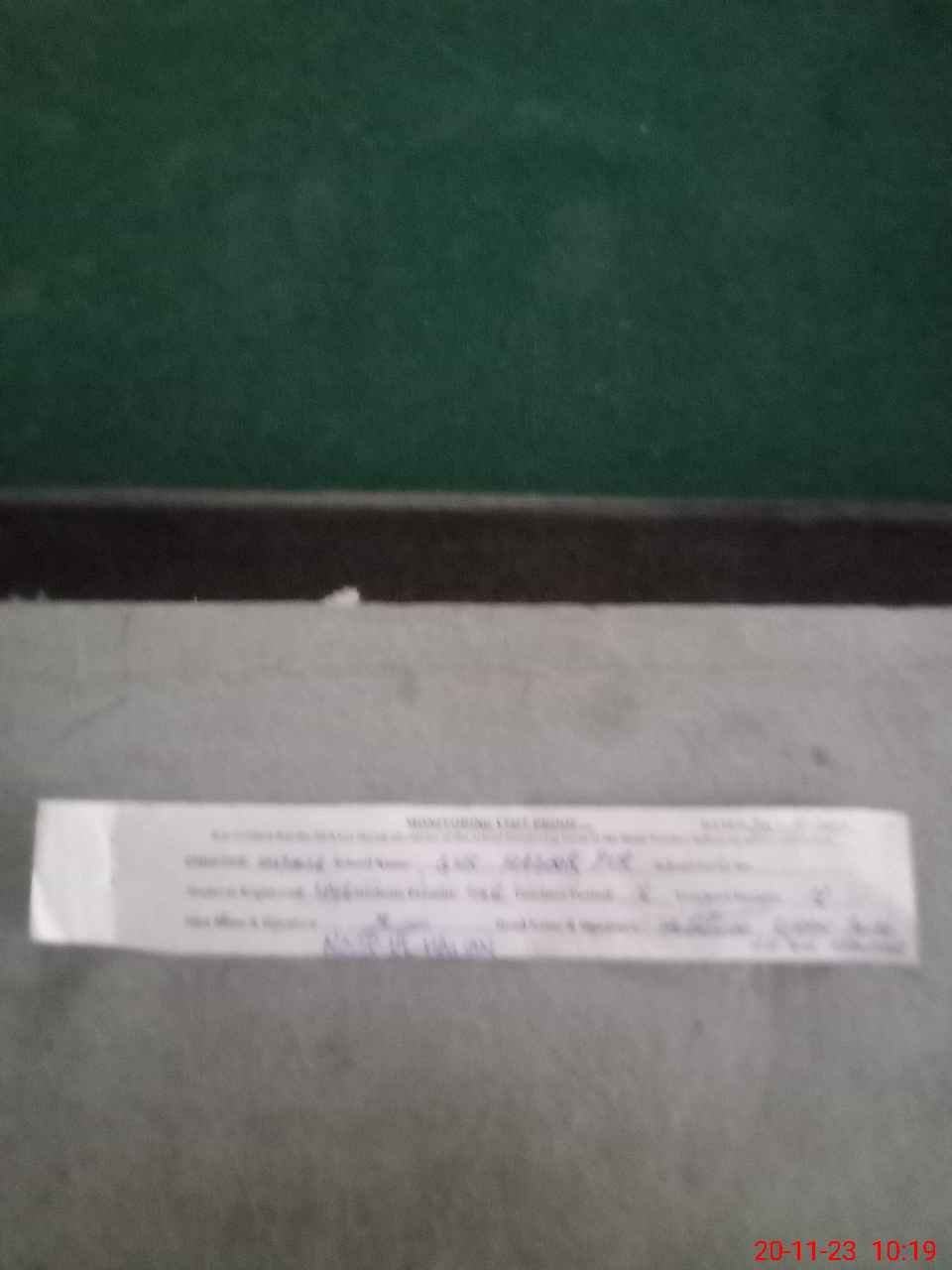 | Monitoring Date: 20-11-2023 | Start Time: 20-11-2023 09:33 AM | End Time: 20-11-2023 10:19 AM | Name of MEA: NO**** ULHA**** | |